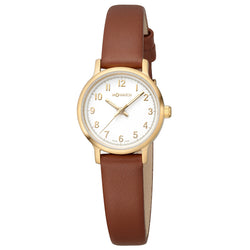 Diese klassische Uhr kombiniert ein 25 mm IP-vergoldetes Gehäuse mit einem braunen Lederarmband. Das schlichte weisse Zifferblatt ist mit arabischen Ziffern verziert, die einen Hauch von Vintage-Charme vereihen und leicht ablesbar sind. Die dezenten goldfarbenen Akzente finden sich auch auf den Zeigern und der Lünette wieder und sorgen für einen harmonischen und raffinierten Look. Ausgestattet mit einem Quarzwerk und handgefertigt in unserer Fabrik garantiert diese Swiss Made Uhr präzise Zeitmessung mit jedem Ticken.