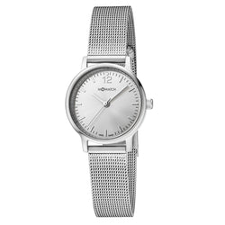 Raffinierte Ton-in-Ton-Eleganz. Diese feminine und zierliche Uhr kombiniert ein Mesh-Armband aus brossiertem Edelstahl mit einem 25 mm Edelstahlgehäuse. Das minimalistische, silberne Zifferblatt mit dezenten Stundenmarkierungen und feinen Zeigern sorgt für einen eleganten Look. Diese Swiss Made Uhr ist mit einem zuverlässigen Quarzwerk ausgestattet und eignet sich perfekt für den Alltag als auch für besondere Gelegenheiten.