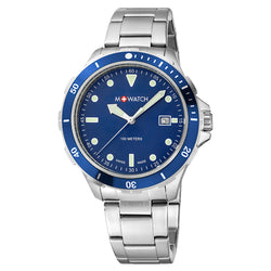 Robust und sportlich. Diese maskuline Uhr kombiniert ein 42 mm Edelstahlgehäuse mit einem Gliederarmband aus Edelstahl. Die leuchtenden Zeiger und Ziffer auf dem markanten blauen Zifferblatt gewährleisten die leichte Ablesbarkeit in allen Lichtverhältnissen. Die farblich passende unidirektionale Drehlünette ist mit einer 24-Stunden-Skala versehen. Ein Datumsfenster auf der 3-Uhr-Position fügt ein weiteres praktisches Detail hinzu, während der verschraubte Gehäuseboden und die 100-Meter-Wasserdichtigkeit für Langlebigkeit und Leistung auch unter Wasser sorgen. Das präzise Quarzwerk dieser Swiss Made Uhr gewährleistet eine zuverlässige und genaue Zeitmessung.