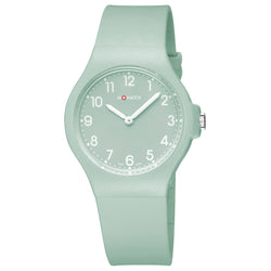Lässig. Sportlich. Bequem. Diese Uhr mit einem 37 mm Gehäuse aus Resin kombiniert ein grünes Zifferblatt mit weissen Ziffern mit einem passenden grünen Kautschukarmband. Der leichte Zeitmesser ist ein stylisches Accessoire für jede Gelegenheit, egal ob du deinen Lieblingssport ausübst oder abends ausgehst. Ausgestattet mit einem Quarzwerk und handgefertigt in unserer Fabrik garantiert diese Swiss Made Uhr präzise Zeitmessung mit jedem Ticken.