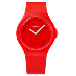 Lässig. Sportlich. Bequem. Diese Uhr mit einem 37 mm Gehäuse aus Resin kombiniert ein ganz in rot gehaltenes Zifferblatt mit weissen Zeigern und einem poppigen roten Kautschukarmband. Der leichte Zeitmesser ist ein stylisches Accessoire für jede Gelegenheit, egal ob du deinen Lieblingssport ausübst oder abends ausgehst. Ausgestattet mit einem Quarzwerk und handgefertigt in unserer Fabrik garantiert diese Swiss Made Uhr präzise Zeitmessung mit jedem Ticken.