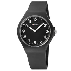 Lässig. Sportlich. Bequem. Diese Uhr mit einem 37 mm Gehäuse aus Resin kombiniert ein schwarzes Zifferblatt mit weissen Ziffern mit einem passenden schwarzen Kautschukarmband. Der leichte Zeitmesser ist ein stylisches Accessoire für jede Gelegenheit, egal ob du deinen Lieblingssport ausübst oder abends ausgehst. Ausgestattet mit einem Quarzwerk und handgefertigt in unserer Fabrik garantiert diese Swiss Made Uhr präzise Zeitmessung mit jedem Ticken.